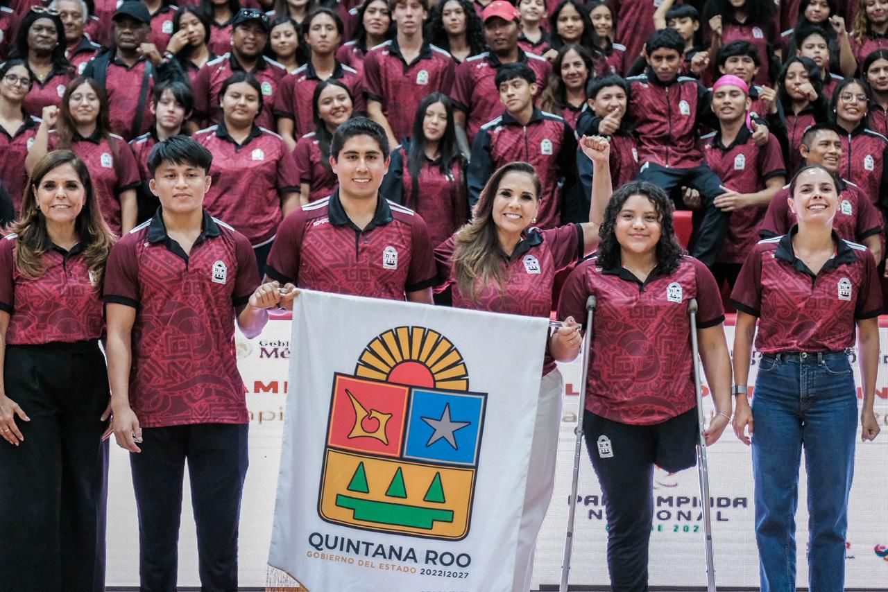 Al destacar que son un orgullo para Quintana Roo y con ello desearles todo el éxito para lo que serán unas próximas semanas de intensas competencias, la gobernadora Mara Lezama Espinosa abanderó a los más de 800 integrantes de la delegación deportiva de Quintana Roo, la más numerosa en la historia, entre ellos atletas, paratletas, entrenadores, delegados, jueces y staff, que participará en la Olimpiada y Paralimpiada Nacional CONADE 2026.