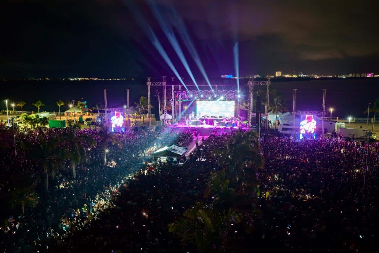 En una total fiesta comunitaria, familiar y espectacular a la orilla de la Laguna Nichupté, con la presencia de la Presidenta Municipal, Ana Paty Peralta, la agrupación mexicana “Los Ángeles Azules” coronó los festejos del 56 Aniversario de Cancún con un concierto gratuito en Malecón Tajamar, al que asistieron más de 31 mil personas.